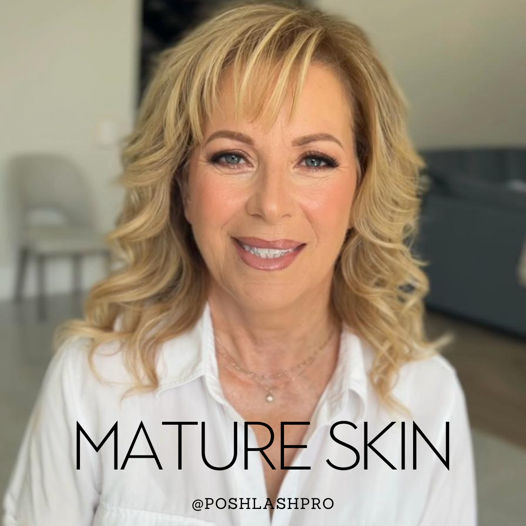 For mature skin, lightweight lashes such as Posh Lash Pro’s “Darling” create a natural, eye-enhancing effect that complements your makeup without being too heavy. Featuring a middle flare and elongated outer corners, they offer a gentle lift. Keep in mind that various eye shapes and age groups may have different lash style preferences!